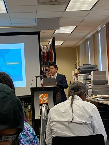 Raúl Hinojosa (Professor, UCLA), opened the dialogue with global major zones of Indigenous Peoples that currently face environmental crises, and destabilization issues. Over 500 million people (2023) are currently being impacted by global climate change. These climate Destabilization Zones correlate with Indigenous Peoples Territories, and present the world with one of the greatest current crises, and upcoming future crises to be seen. Hinojosa also presented the UCLA GIS Mapping projects, and how the use of big data, and new technologies can be used to demonstrate the needs of peoples across the world, and to find global solutions.